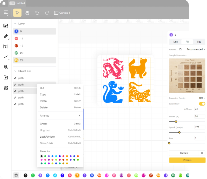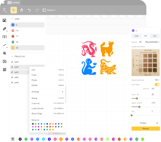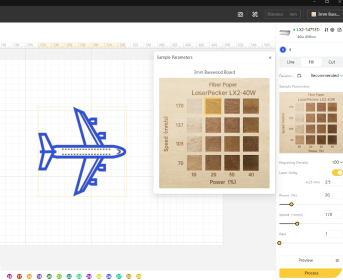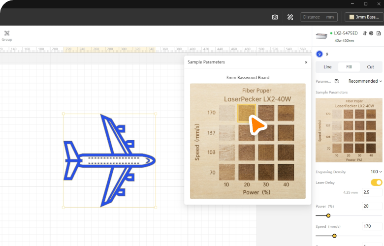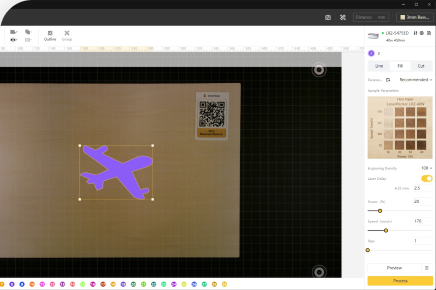 素材パックのQRコードを読み取るだけで、最適な加工パラメータを自動的に設定できます。もう試行錯誤は必要なし。